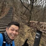 山頂への道はいくつかルートがありますが、自然遊歩道を通っていきました。このルートは木段が多く階段トレーニングにオススメです。自転車で登った別ルートもかなりの急坂でしたが、木段も急です。